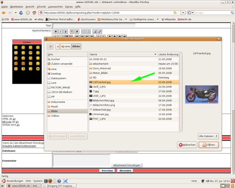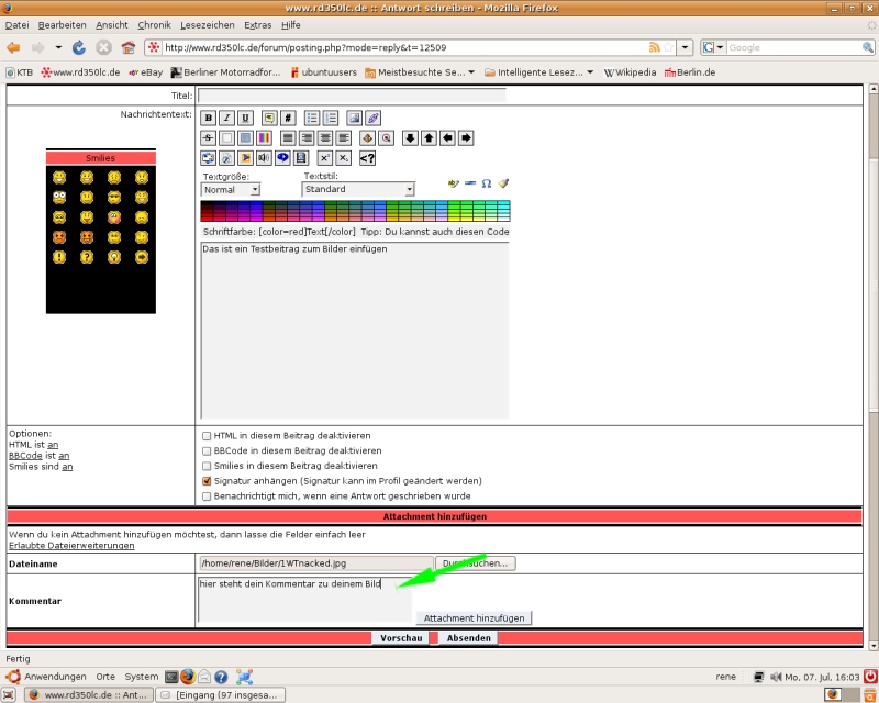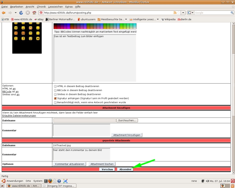 Wichtig: Das Bild sollte nicht mehr als 800x640 groß sein und darf nicht mehr als 200 kb haben.