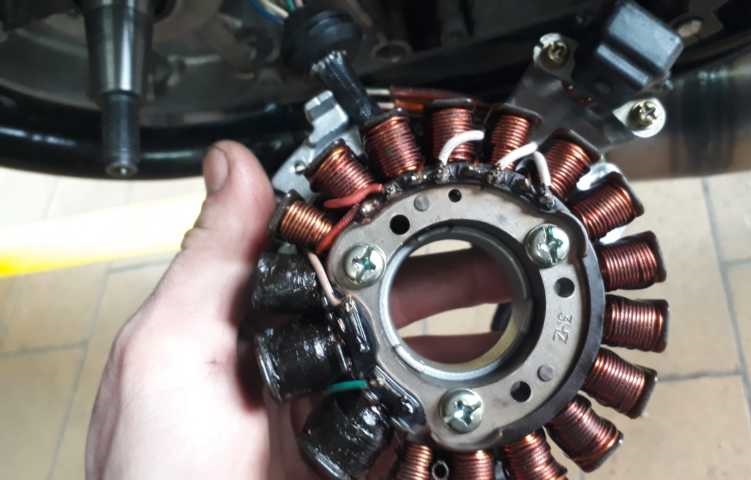 Eine andere Möglichkeit wäre auch, das einer der innen liegenden Magnete zerbröselt ist.Dazu das Polrad in die Hand nehmen und radial schnell hin und her drehen.Macht es Geräusche ist einer der Magnete hin