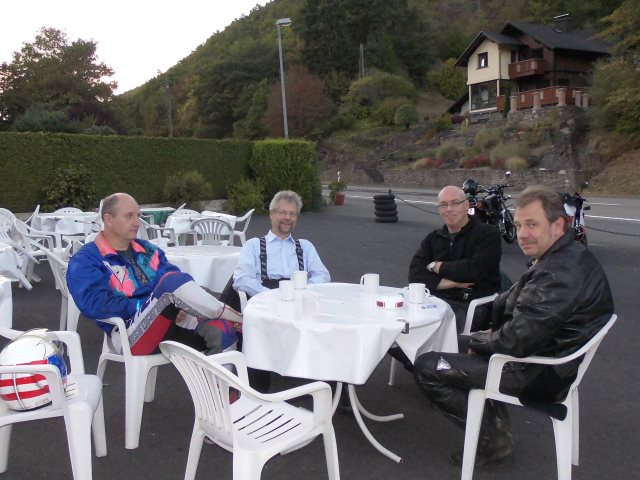 Ja das wird was mit dem Stammtisch. Heute waren wir schon zu sechst (davon allerdings 3 Zuvieltaker. Dem Stefan muss ich noch einen 2T aufschwätzen, damit er wenigstens einen besitzt...) Bei der Ausfahrt müssen wir noch an der Koordination arbeiten, damit nicht schon beim Start 1/3 der Truppe verloren geht...