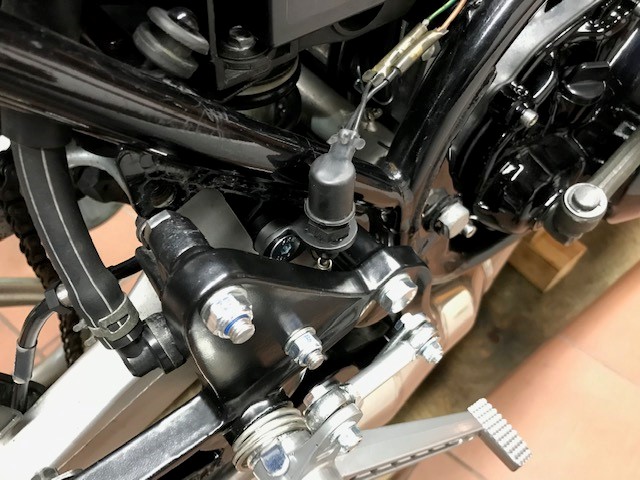 - ich habe eine Distanzscheibe zwischen Bremshebel und Fußraste anfertigen müssen, sonst ist die Spiralfeder nicht freigängig.