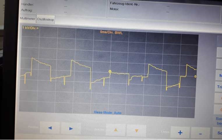 Habe auch mal noch den Spannungsverlauf von der Zündspule sekundärseitig aufgezeichnet. Wirklich schlau werde ich daraus aber auch nicht, sieht mal so gar nicht aus, wie es in meinem Fachkundebuch steht...?!