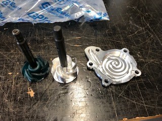 Von LD Crazy gibt es den sogenannten Mega Impeller. Also ein Wasserpumpenrad, welches axial länger ist, außerdem eine andere Flügelgeometrie als die Serie hat. Damit das paßt, gibt es dazu passend einen Deckel, der nicht flach ist, sondern eine Tasche hat, also sozusagen die größere Breit vom Wasserrad kompensiert.