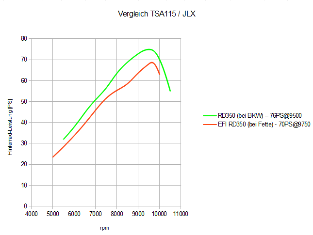 Die Simulation hat für die TSA115 zusammen mit der Modifikation "Kopfspacer" ca. 6 PS mehr vorhergesagt als mit der JLX60 und das bei leicht reduzierter Drehzahl.