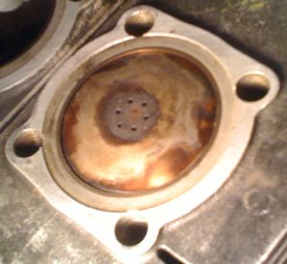 Im rechten Kopf sind komische Markeringen wie kleine Einschläge zu sehen. Sind das die Zeichen von der klopfender Verbrennung, die den Leistungseinbruch verursacht habt? Würde mich nicht wundern denn bei der Ölpampe hätte ich sicher auch mit Glühzündung fahren können.