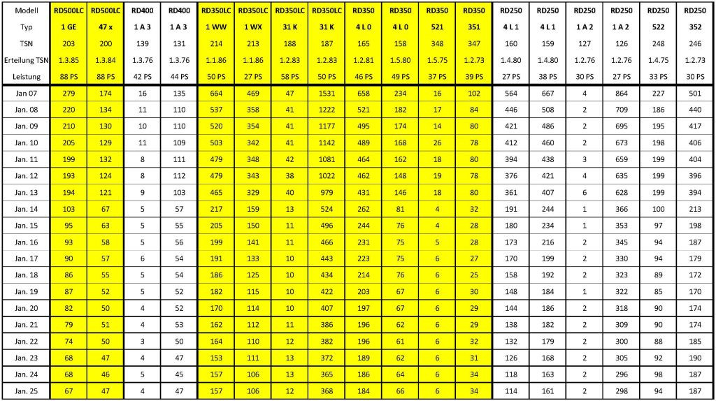 Zulassungszahlen der RD´s