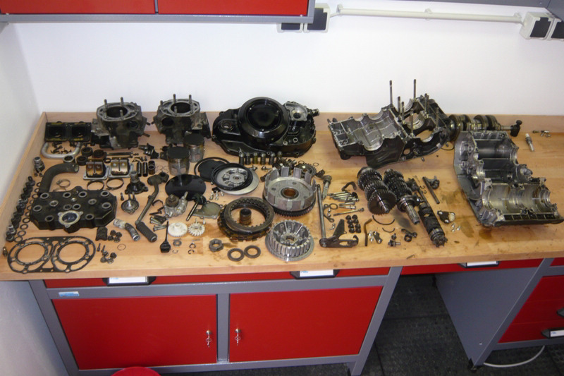 Ansonsten viel Spaß beim Schrauben. Mein Motor liegt schon ne ganze Weile auf der Werkbank. Habe beim Demontieren so manche Überraschung erlebt. Jetzt sind alle Teile zusammen und es geht an das Zusammenbauen. Habe ein paar Fotos gemacht, die mir jetzt helfen..... Grüße Detlef