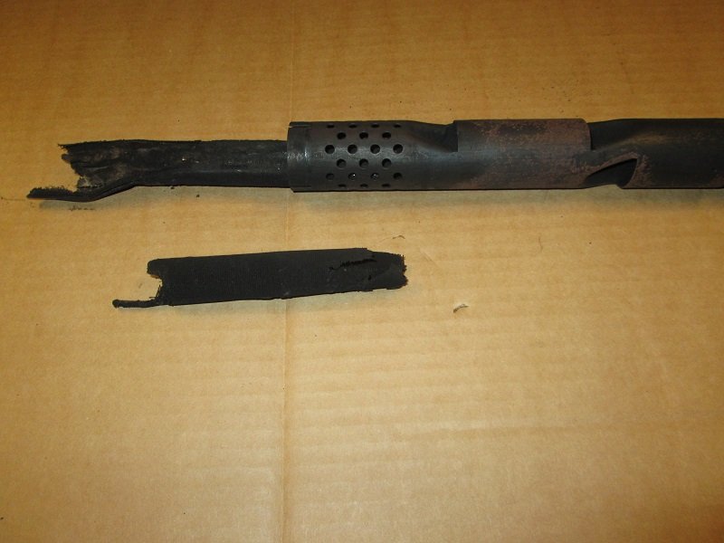Es handelt sich um ein rund gebogenes Drahtgeflecht, und in der Mitte befindet sich Glas- oder Mineralwolle, zumindest bei einem Teil, beim anderen ist diese Wolle vermutlich bereits rausgeflogen. Das kann m.M.n. auch nicht am hinteren Siebrohr angebracht gewesen sein, dazu wäre das eine Teil zu lang und die Dinger müssten dann auch anders aussehen. So wie fotografiert habe ich die aus den Auspuffen rausgeschüttelt.